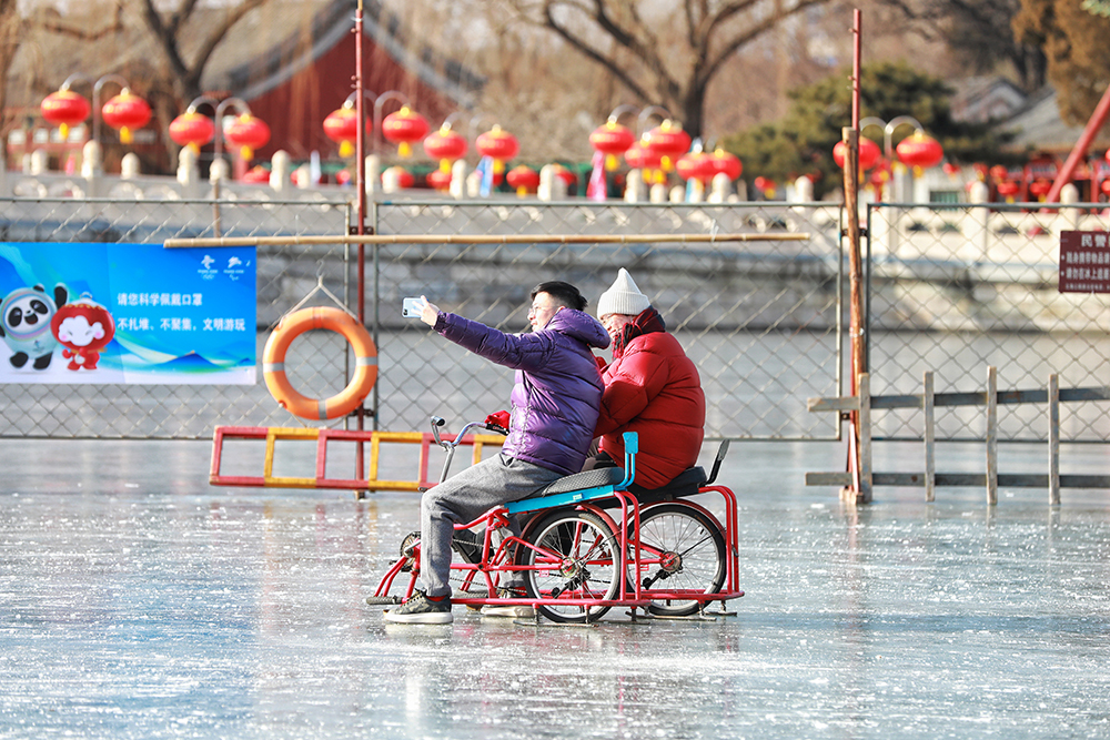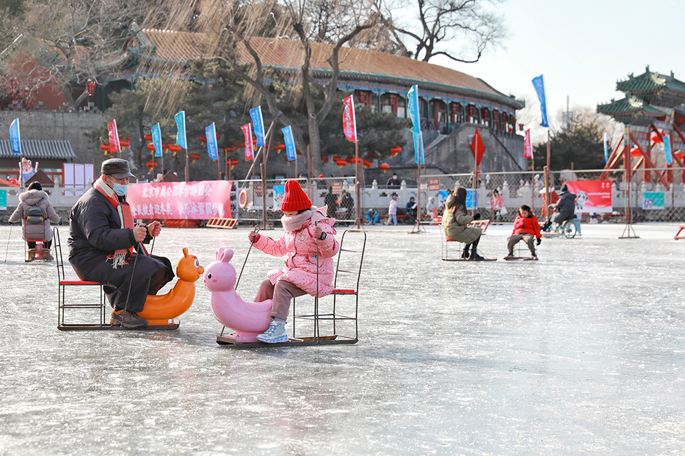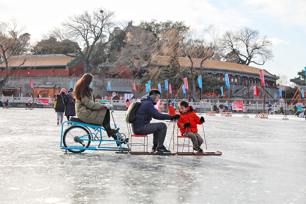 據介紹,今年北海公園冰上活動區域位於公園荷花湖,總麵積為1.5萬平方米。冰上項目有滑冰、冰上漂移車、卡通冰車、雙人冰車、冰上自行車等。