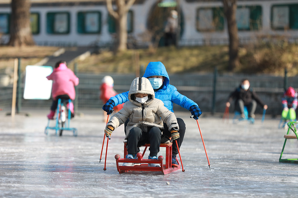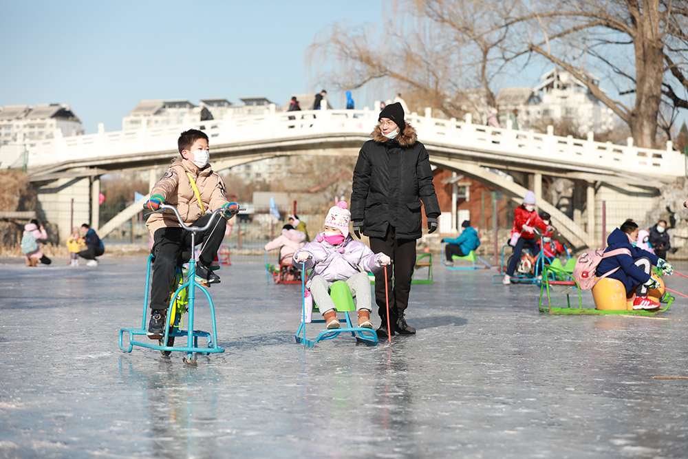 在紫竹院公園內,高6米、寬30米、長80米的雪山滑梯,遊客坐在雪圈上體驗雪上飛翔的刺激。雪地坦克 、卡丁車、雪國列車、動感悠波、回旋大冒險等8項經典雪上趣味娛樂項目,吸引不少市民遊客走出家門參與到冬季健身活動中來。據工作人員介紹,2022年公園利用北小湖打造出1.5萬平方米的人工雪場,同時,公園大湖、南小湖共計近4萬平米的天然冰場開展各類冰上健身活動。