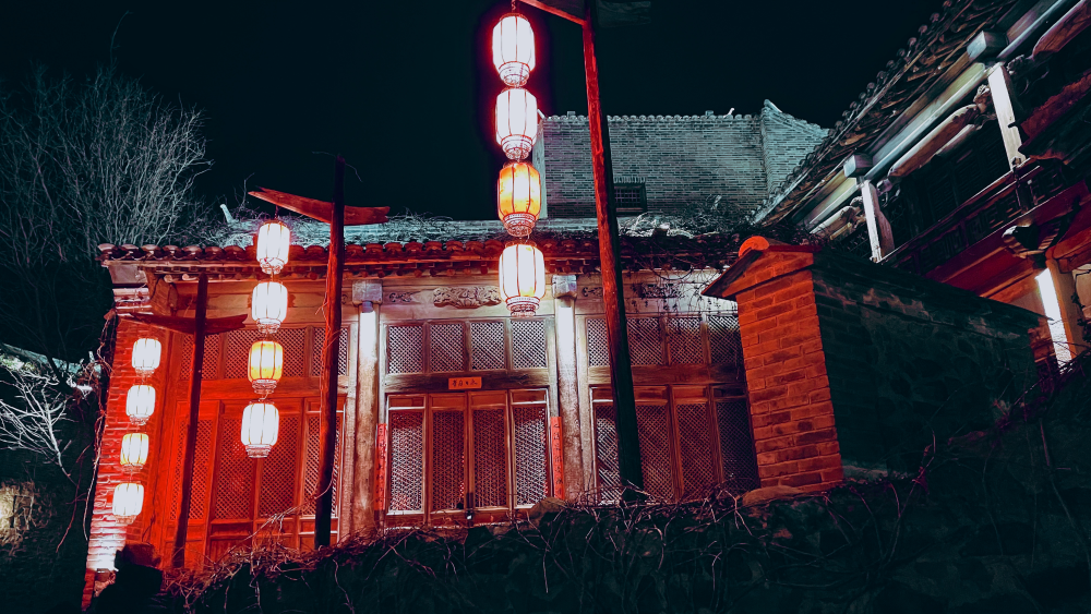 走進古北水鎮,看到明世式的房屋上麵掛滿了紅燈籠,在街角還有一些路口擺放了很多花燈。