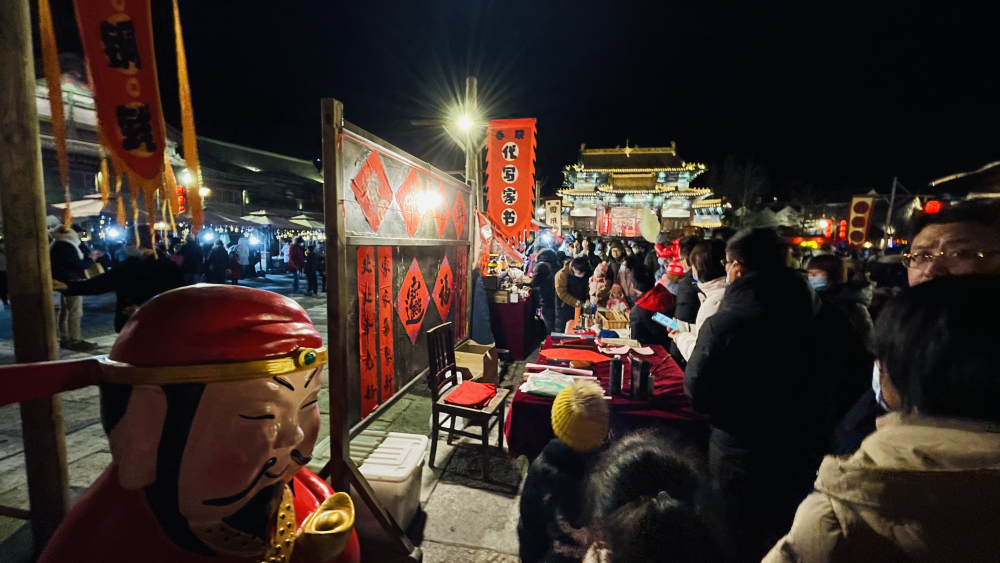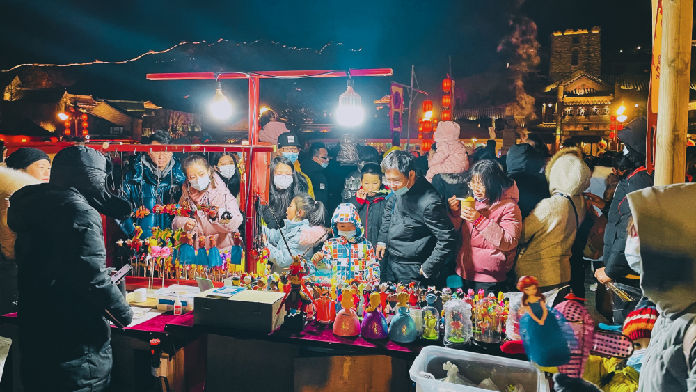 古北水鎮景區今年春節期間推出了寫春聯、吹糖人、打銅錢、捏麵人等民俗體驗互動活動。