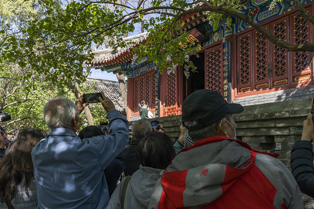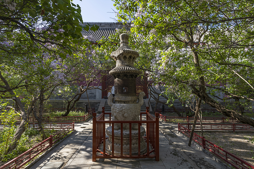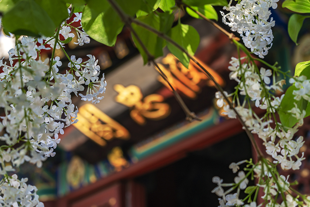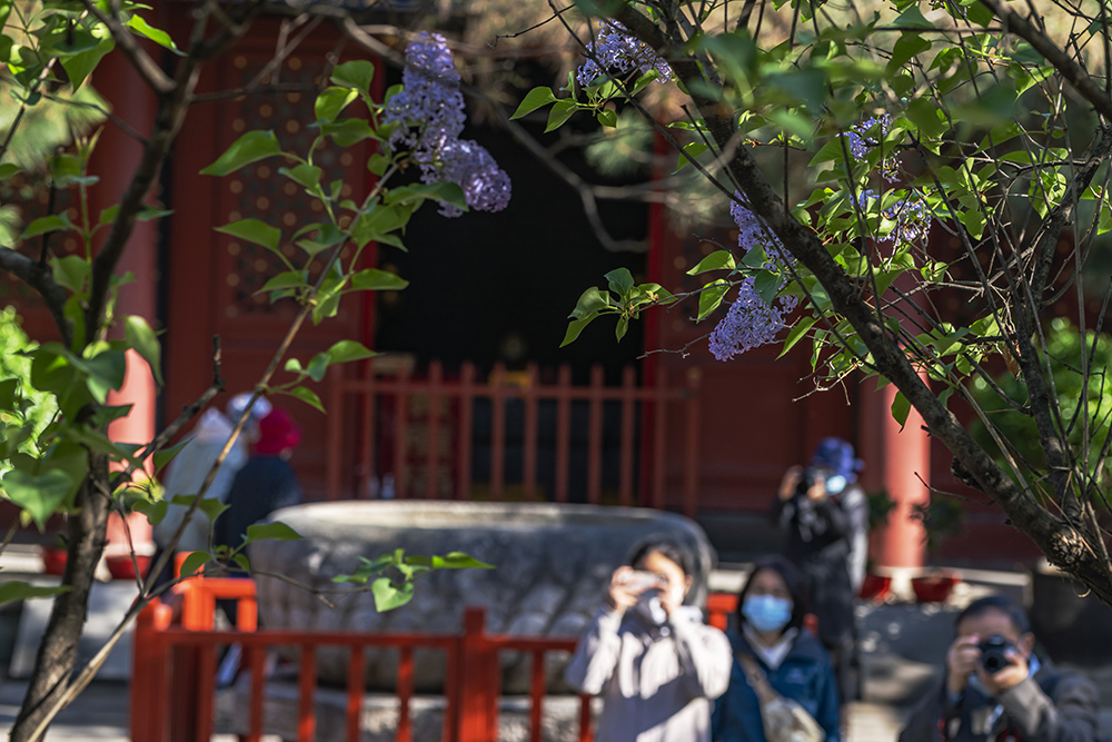 近期,法源寺的丁香花滿園,與寺內建築相映襯,彌漫著濃濃禪意。
