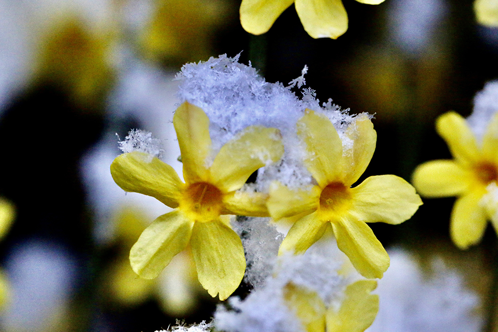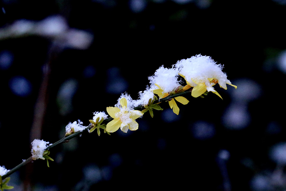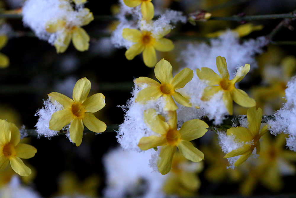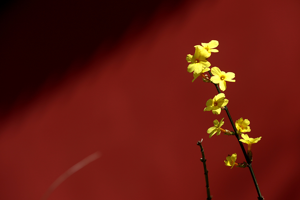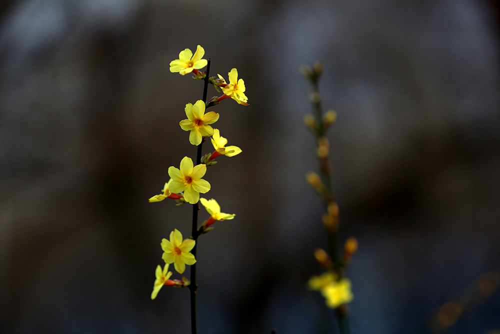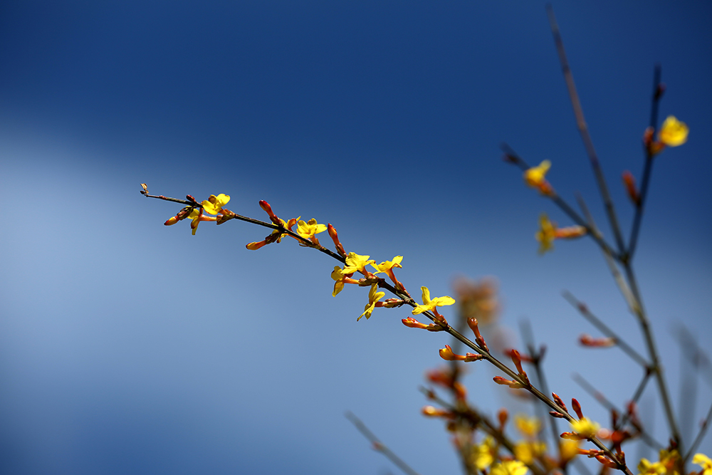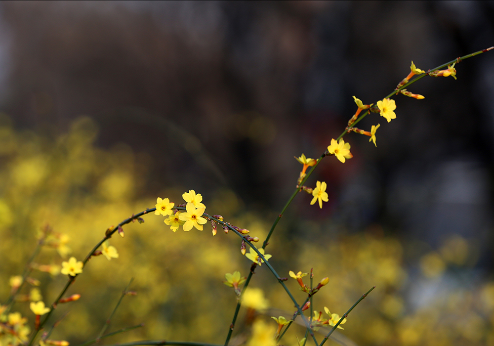 在冬春交際之時,迎春不畏嚴寒,在灌木叢中,點綴出第一筆春色。開得很小卻很美,為經曆一冬的枯木增添光彩與生機。在春日裏隨風搖曳盡展芳姿,不為人賞,隻為歡喜。