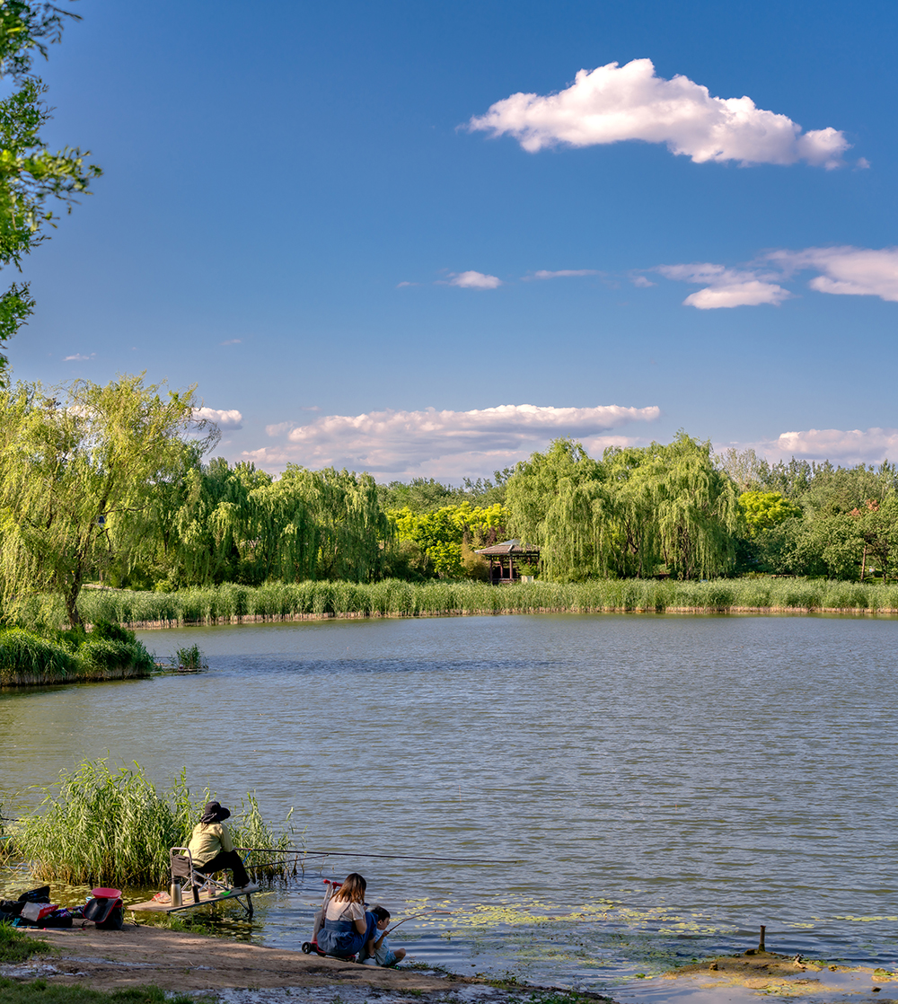 北塢公園還有獨具匠心的“八大景”:北塢公園的象征,木質船頭“北塢印象”;百年金山寺寄托“古寺鄉情”;清代皇帝禦耕景“耤田耕織”;寓意希望的樹林“興林寄語”;夏季也很美的“新廬秋韻”;紫藤花鋪就的“曲廊藤影”;高水湖波平如鏡倒影著“高湖塔影”;青山碧水間“雙林聚賢”。相比頤和園的大氣厚重,北塢公園的明山秀水浸潤出更閑適的自然情趣,更濃厚的生活氣息。