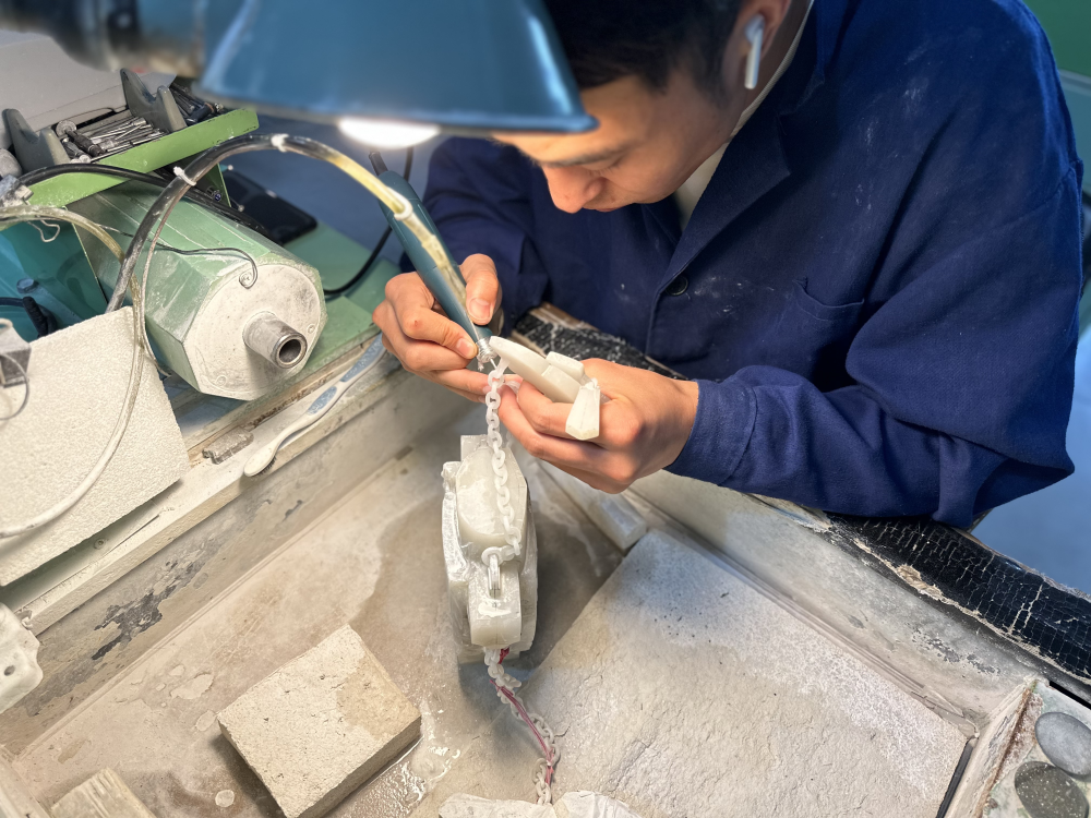 張鐵成在手藝上專撿“硬骨頭”啃,比如“鏈子活”,即從器物本身取材琢製縷縷相連的小圈組成鏈條,是皇家玉雕絕技之一,往往要求用大料雕琢,一旦失誤,整料作廢,損失巨大。