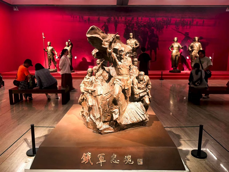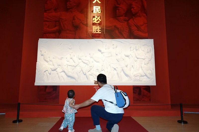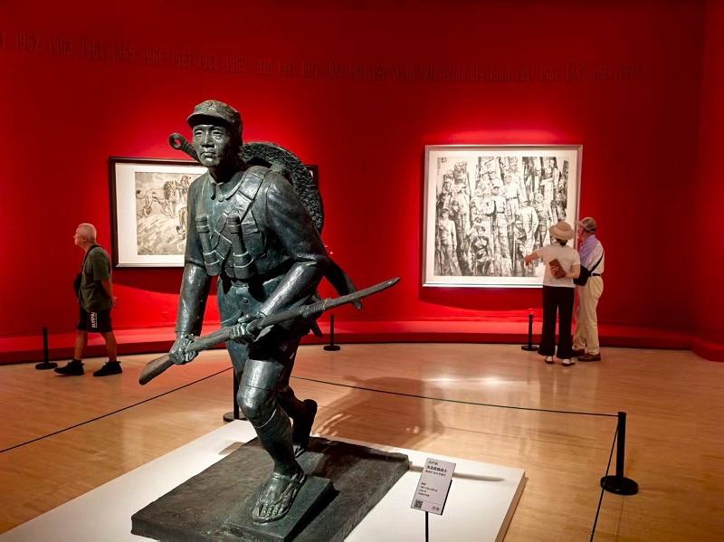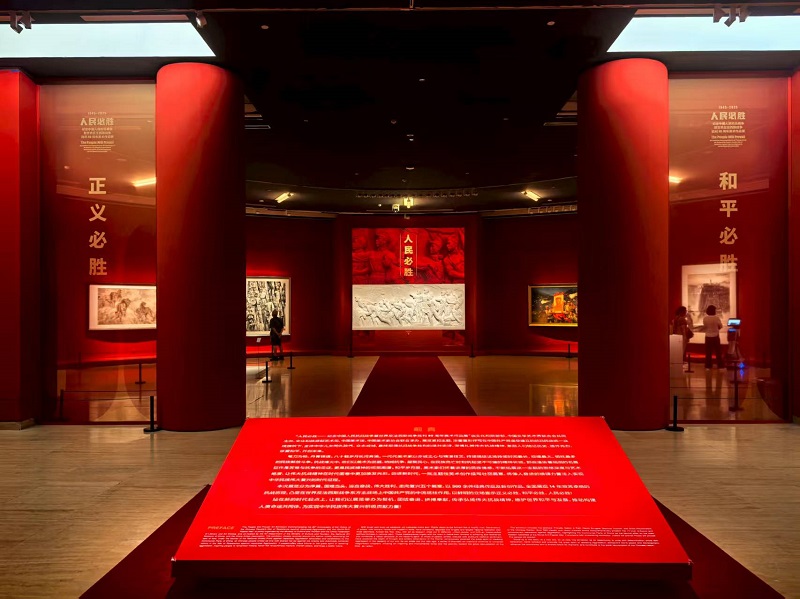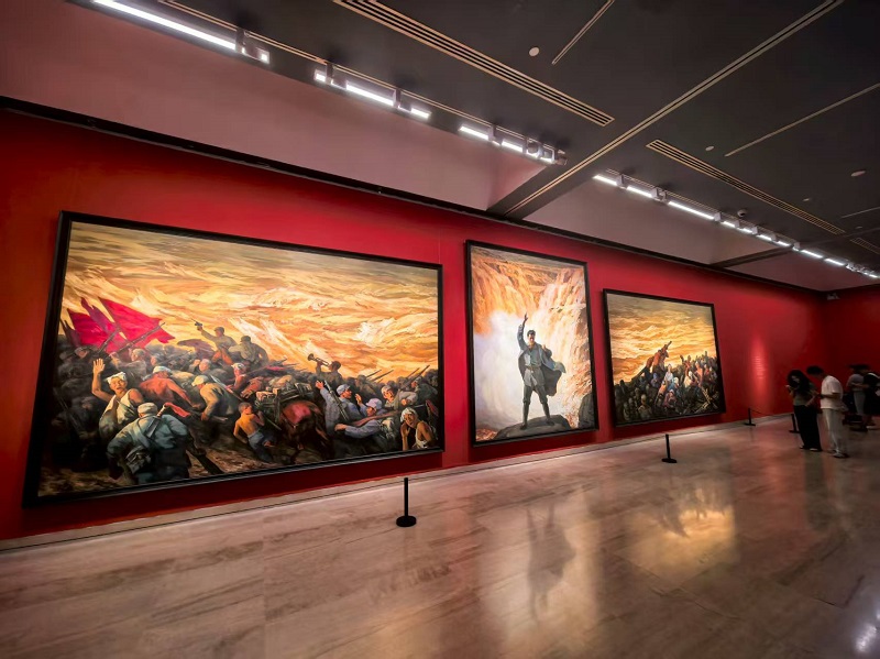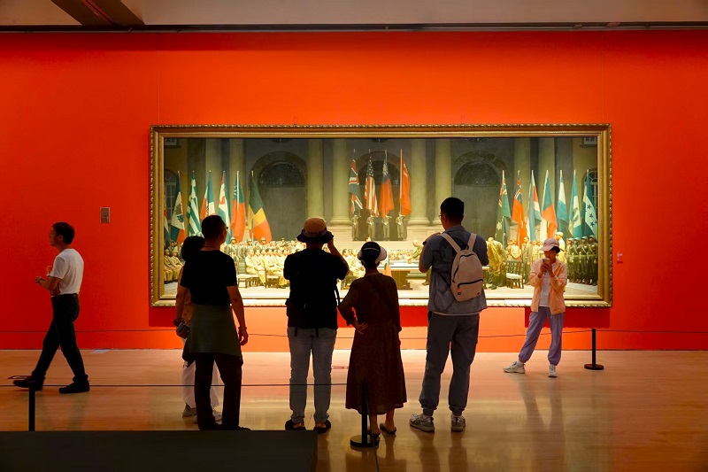 “人民必勝——紀念中國人民抗日戰爭暨世界反法西斯戰爭勝利80周年美術作品展”正在北京中國美術館展出。展覽匯集中國美術館、中國共產黨曆史展覽館、中國人民革命軍事博物館等單位收藏的300餘件美術作品和新創作品,涵蓋中國畫、油畫、版畫、雕塑等多種類型,展覽將持續至9月18日。(攝影:楊建國)