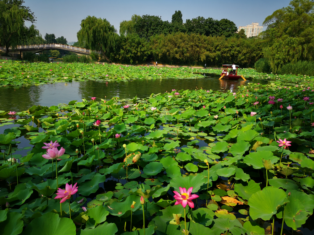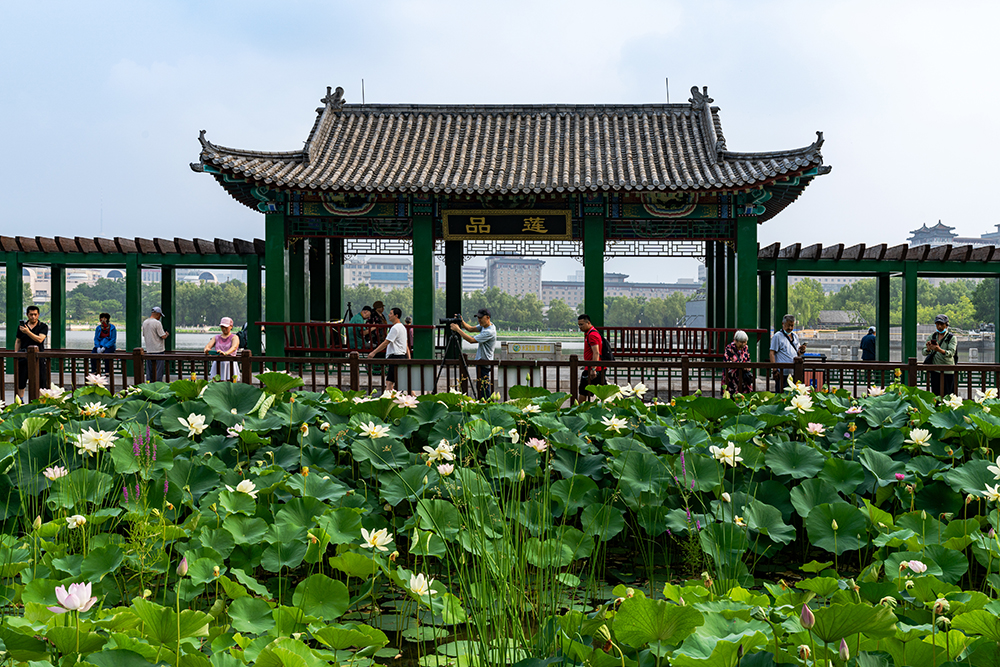 “灼灼荷花瑞,亭亭出水中。”夏日,正是荷花最為豔美的時候,各處荷花次第開放,成為一道亮麗的風景。不少市民不約而同來到荷花池畔,定格這份“夏日限定”禮物。(攝影:申炳成)