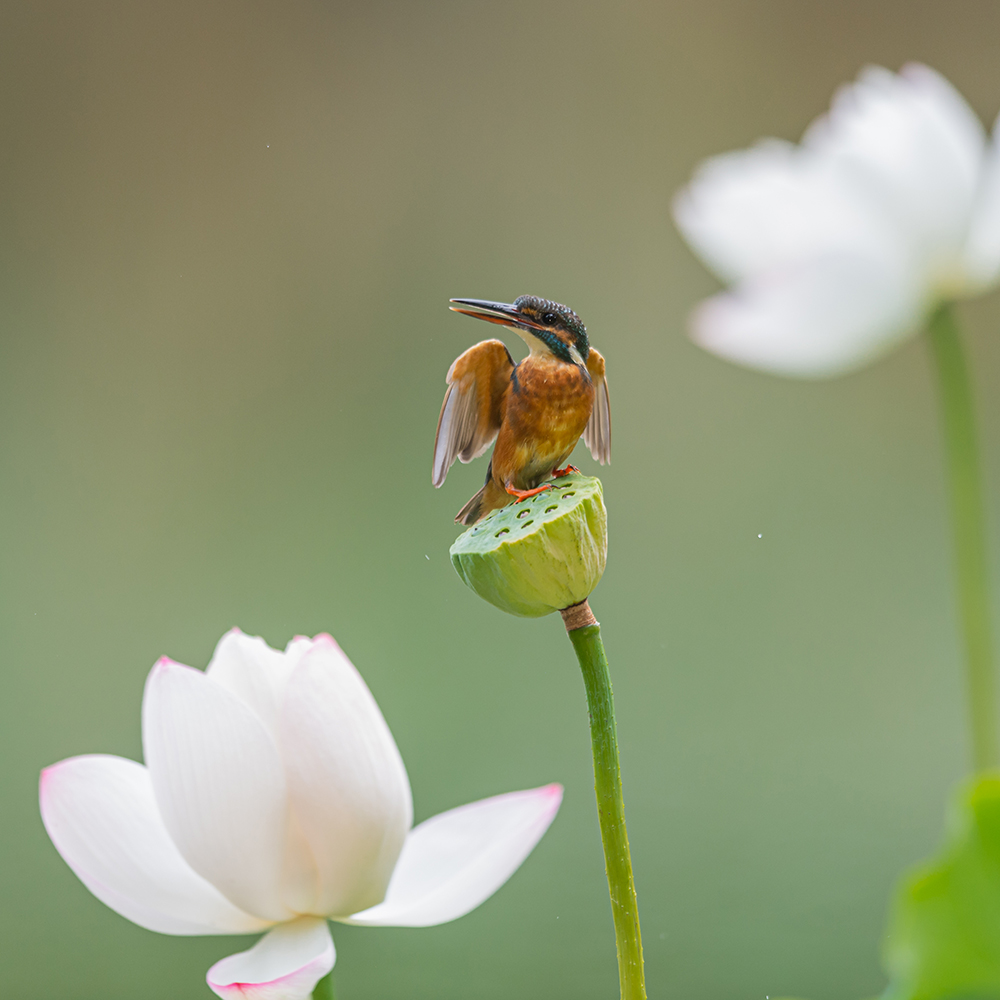 翠鳥體型較小,成鳥隻有15厘米大小。在北京,翠鳥因毛色漂亮,寶藍色的羽毛,在淡紅色的荷花上,姿態優雅又千變萬化而使不少鳥類攝影愛好者成為了它的粉絲,有網紅小翠之稱。