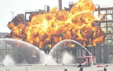 作品簡介:火勢凶猛如怪獸,消防車噴出的高壓水柱與凶猛的火勢對峙,展現了滅火救援現場的凶險情形。
