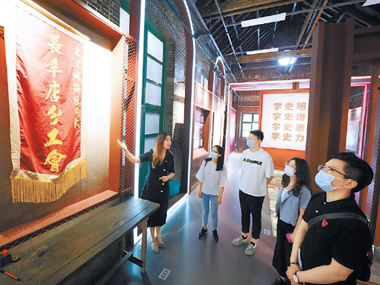 - 二七廠百年老廠區如今成了二七廠1897科創城,為周邊居民提供嶄新的城市生活空間。圖為周圍居民在參觀展覽