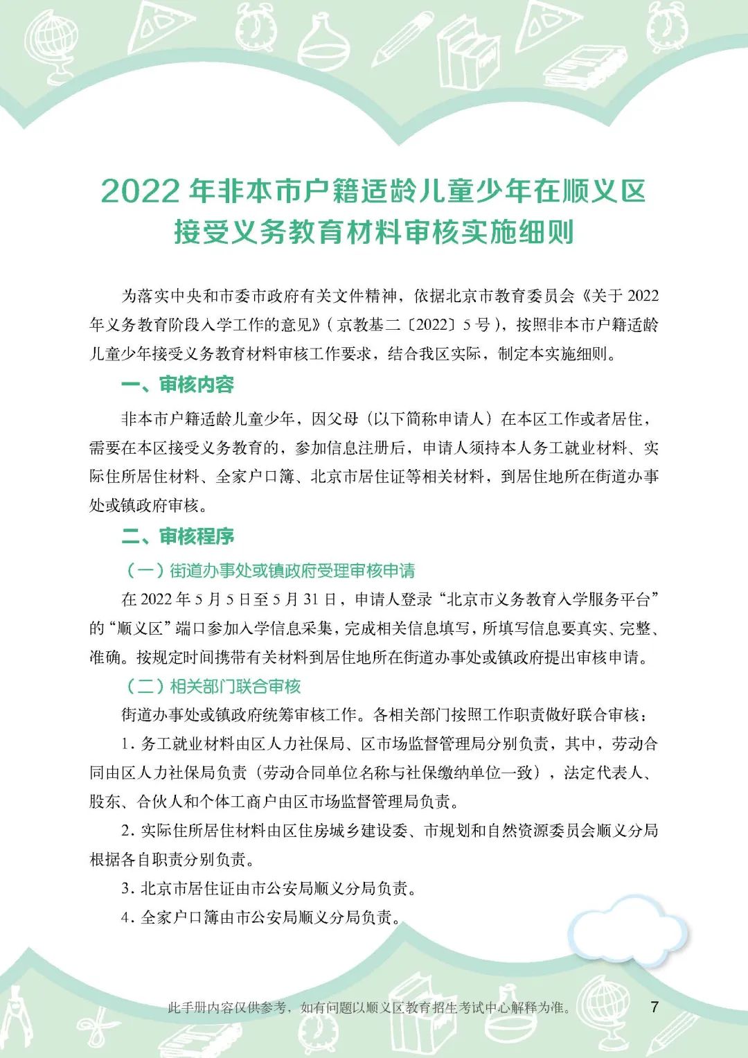 2022年非本市戶籍適齡兒童少年在順義區接受義務教育材料審核實施細則