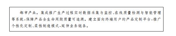 支持製造業企業延伸生產性服務,拓展智能製造係統集成應用,提供遠程運維、狀態預警、故障診斷等在線服務,培育融資租賃、全生命周期管理、工業電商、產品再利用與再製造等新業態。培育柔性化定製模式,支持企業增強定製設計能力,加強零件標準化、配件精細化、部件模塊化管理,實現以用戶為中心的定製和按需靈活生產。探索共享生產模式,鼓勵企業開放產品開發、製造、物流配送等資源,提供研發設計、優化控製、設備管理、質量監控等服務,實現資源高效利用和價值共享。